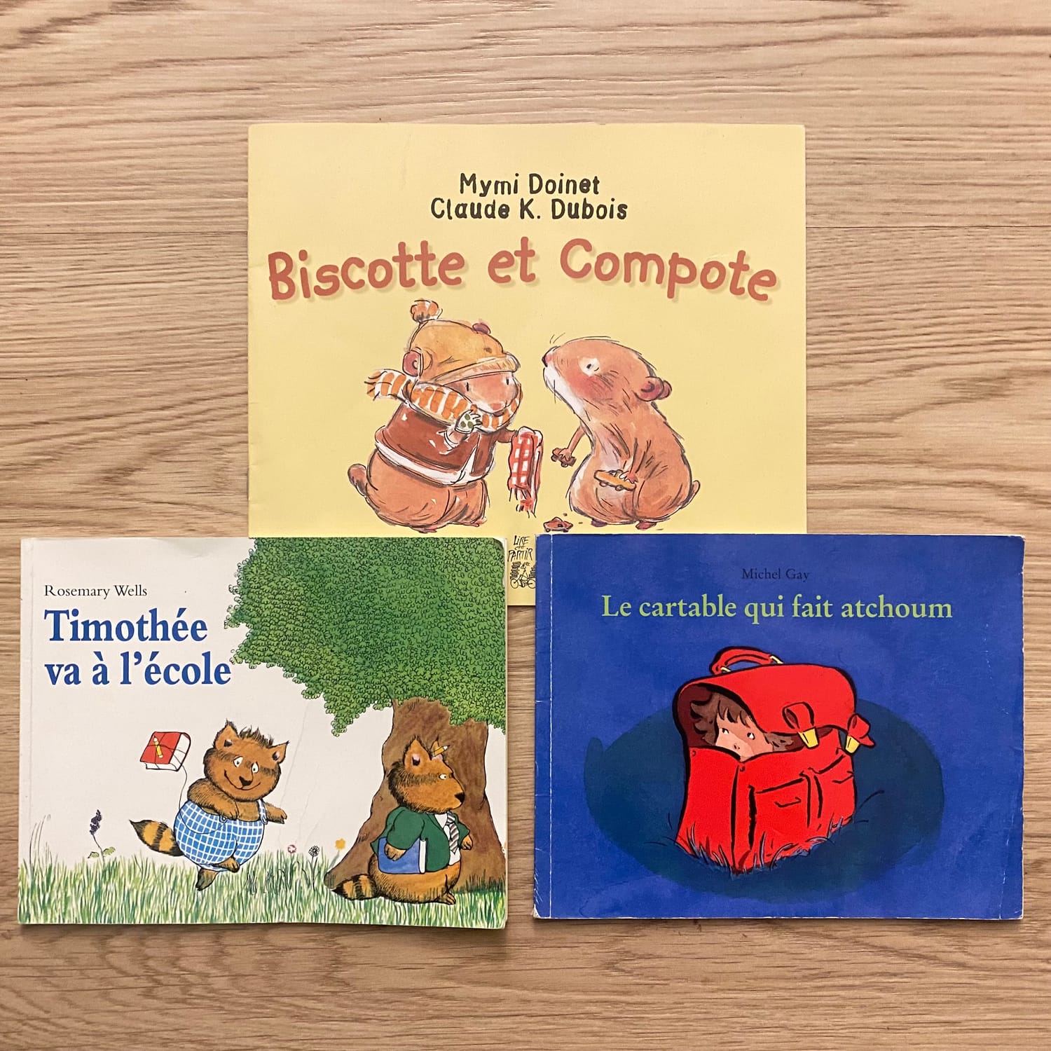 ✨3Lot de 3 livres (+ 4 ans) « Timothée va à l’école » de Rosemary Wells « Le cartable qui fait atchoum » de Michel Gay « Biscotte et Compote » De Mymi Doinet et Claude K.Dubois Très apprécié par les enfants et proposés à l’école ❤️️✨
